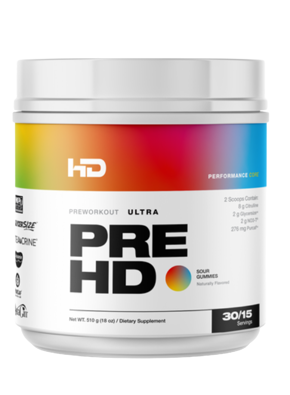 PreHD Ultra is a research backed, effectively dosed, fast acting ultra premium ergogenic aid truly worthy off the title “All in one pre-workout"—Hitting you literally in a matter of minutes, PreHD Ultra delivers a training experience like nothing else on the market today. The heavy dosed facts panel is a precise combination of patented and clinically researched ingredients that have been meticulously formulated together to deliver: